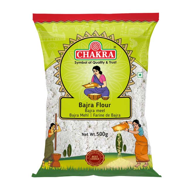 Bajra flour is a type of flour that is made from Bajra grains, which are also known as Pearl Millet or Black Millet. It has a slightly nutty flavor and is greyish in color. Bajra flour is a popular ingredient in Indian cuisine, especially during winters. It is often combined with wheat flour to make flatbreads like bhakari, thepla, and khakhra. Bajra flour is warm in its attribute, making it a perfect ingredient to keep the body warm during winters.