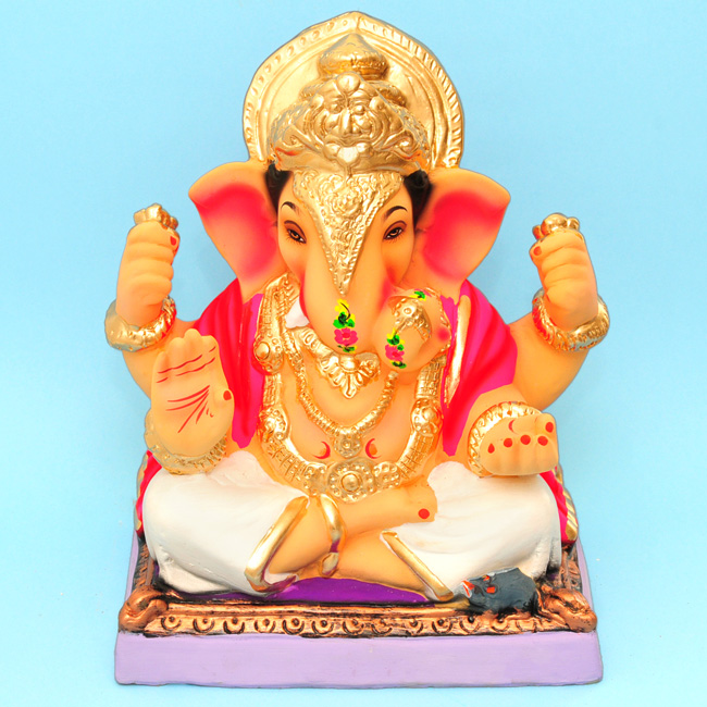 This lord Ganesha idol is made with Eco-friendly river sand, paper pulp, natural colours and natural gums.