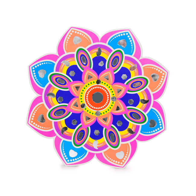 Add quick and colourful décor with the Paper Rangoli Decoration with Mirrors, 29cm. This ready-to-use rangoli instantly brightens your space with vibrant patterns and mirror work—perfect for Diwali, Navratri, weddings, and festive gatherings.