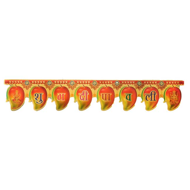 Shubh Deepawali Toran ist ein dekoratives Kunstwerk und eine Türhänger-Girlande. Es wird bei günstigen, feierlichen Anlässen, Hochzeiten und Einweihungsfeiern verwendet. Torans werden während Festen wie Diwali am Eingang des Hauses aufgehängt, um Gäste und Gratulanten willkommen zu heißen. Sie werden auch an der Haupttür des Hauses aufgehängt und sind als „Bandhanwar” bedeutet die Bindung zwischen Familienmitgliedern.