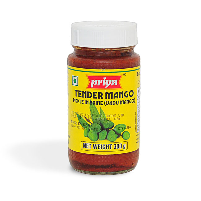 Zarte Mangogurke ist gepflückte Babymangos. Tander Mango Pickle ist sehr lecker und daher in Indien sehr beliebt. Zarte Mangogurke ist auch bekannt als Kannimanga Achar, hergestellt aus Nalla cheriya puli ulla Kanni Manga in Kerala und Maavadu, Vadu Manga, Vadu Mago Pickle in Tamil.