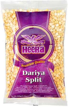 Heera Daria, également connue sous le nom de Roasted Gram Split, est produite en rôtissant et en fendant des lentilles chana dal ou gram. Cet ingrédient polyvalent est largement utilisé dans divers plats, notamment dans la cuisine du sud de l'Inde, comme le chutney de noix de coco. C'est un ingrédient important dans les collations indiennes populaires telles que le chivda et le bhel puri, ainsi que dans la préparation de mélanges d'épices tels que le garam masala et le chaat masala.