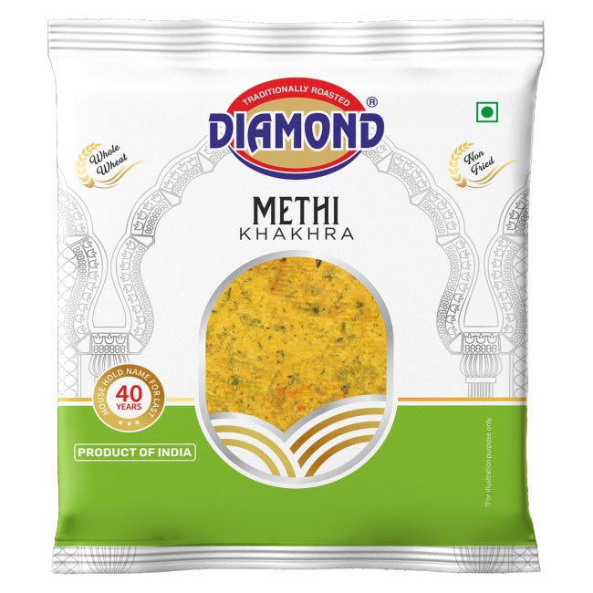 Diamond’s methi khakhra brings home the comforting taste of Indian kitchens, where a simple khakhra and achar (pickle) is a timeless combo. Light and easy to digest, it makes a great addition to your breakfast routine, tea-time spread, or even late-night snacking.