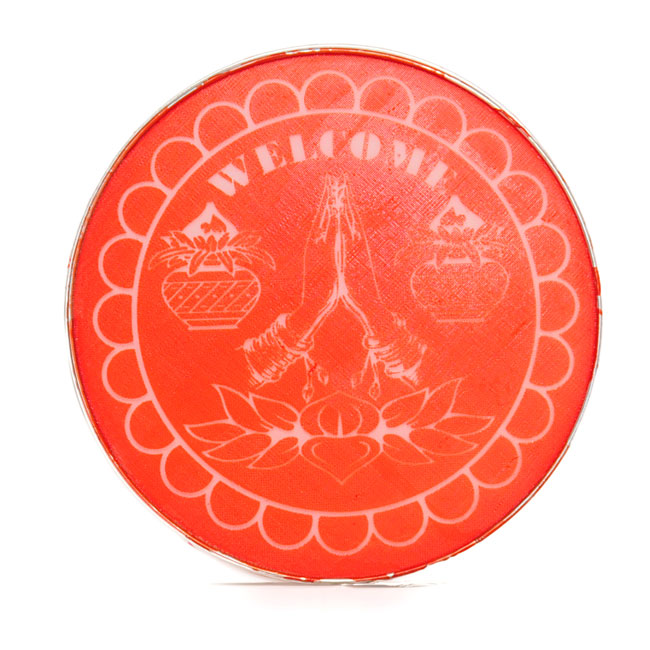 Welcome rangoli net stencil, 20cm. Greet guests with colourful festive designs at your doorstep. Perfect for Diwali, weddings and special occasions.