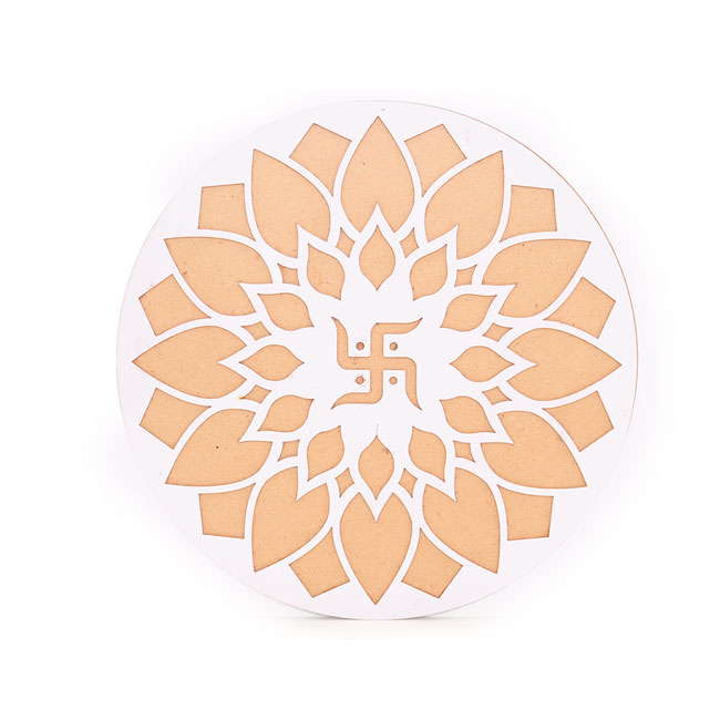 Add sacred symbolism to your décor with the Swastik MDF Rangoli Stencil, 30cm. Made from sturdy MDF, this stencil is perfect for creating large and detailed rangoli patterns for Diwali, Navratri, weddings, and puja entrances.