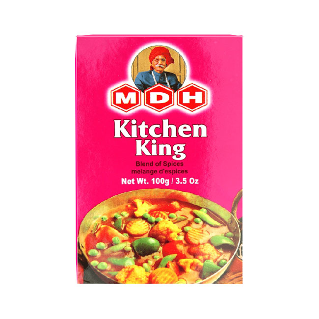 Kitchen king masala, as the name suggests, is a king of all spice blends. MDH Kitchen King Masala is a strong aromatic blend of major spices, suitable for almost every Curry, Sabji Biryani or Pulao. This masala blend is on spicy side, therefore use it sparingly.