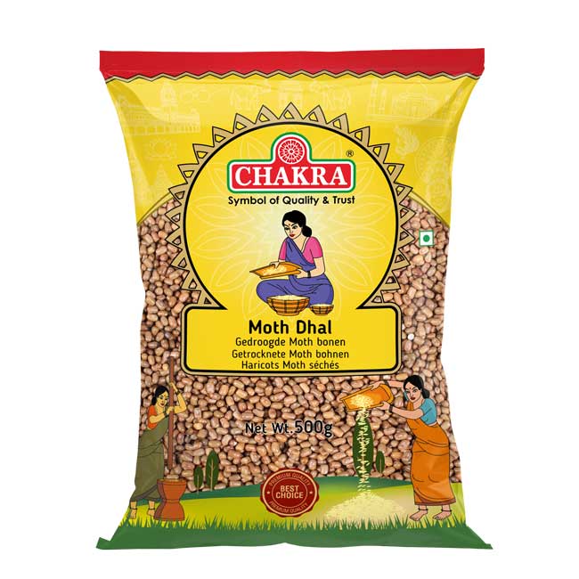 Chakra staat bekend als een betrouwbaar merk voor Indiase basisproducten. Moth dal wordt vaak gebruikt in huisgemaakte gerechten, van gekiemde bereidingen tot regionale stoofgerechten.