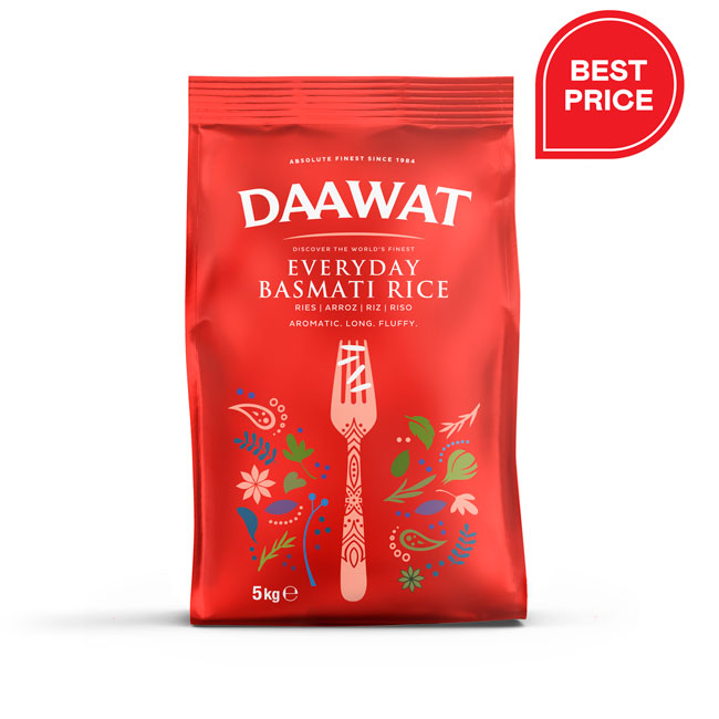 Daawat Everyday Basmatirijst is een exclusief geselecteerde aromatische basmatirijst die een lange en donzige korrel levert tegen een uitzonderlijke prijs. Elke korrel Daawat-rijst wordt met de hand geplukt in de beste omstandigheden in een geselecteerd deel van Noord- en Centraal-India. Deze granen worden geteeld in vruchtbare grond, waardoor ze een kenmerkende smaak hebben. De goedheid van de bodem en het natuurlijke klimaat stellen Daawat Rice in staat om een verscheidenheid aan kwaliteitsproducten te creëren met nauwkeurige veroudering, verwerking en integriteit. De consistente smaak van Daawat Everyday Basmati Rijst maakt het een veelzijdige keuze voor dagelijks gebruik in je keuken.
