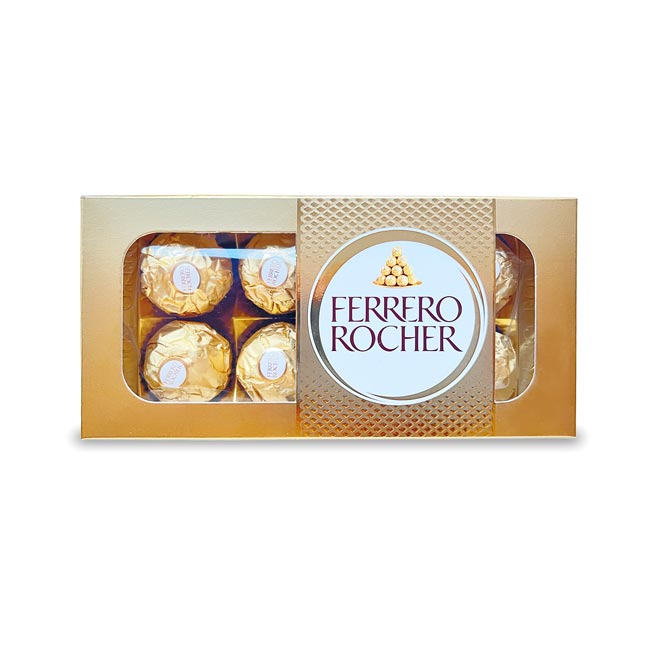 Een elegante Ferrero Rocher doos met 8 pralines, ideaal als Rakhi verrassing voor je broer of zus.