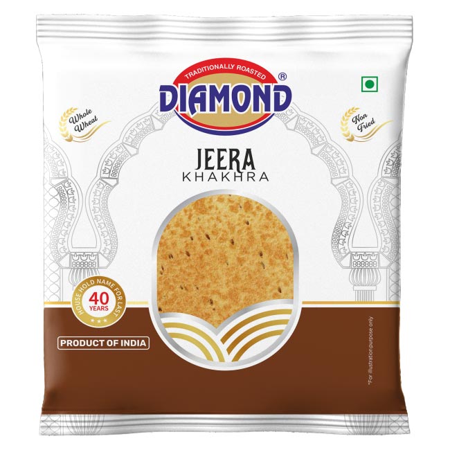 Diamond’s jeera khakhra brings together the subtle spice of cumin with the crispness of traditional khakhra. It's perfect for pairing with butter, achar (pickle), green chutney or even plain with masala chai. Many families enjoy it as a light breakfast or a travel snack that doesn't spoil easily.