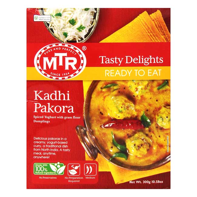 MTR Kadhi Pakora Ready to Eat is een handig gerecht gemaakt van grammeel, aardappel en curry op basis van yoghurt. Deze Punjabi-specialiteit bestaat uit gekruide yoghurt met grammeel en aardappelknoedels in een romige saus op basis van yoghurt, en biedt een heerlijke maaltijdoptie waar u altijd en overal probleemloos van kunt genieten.